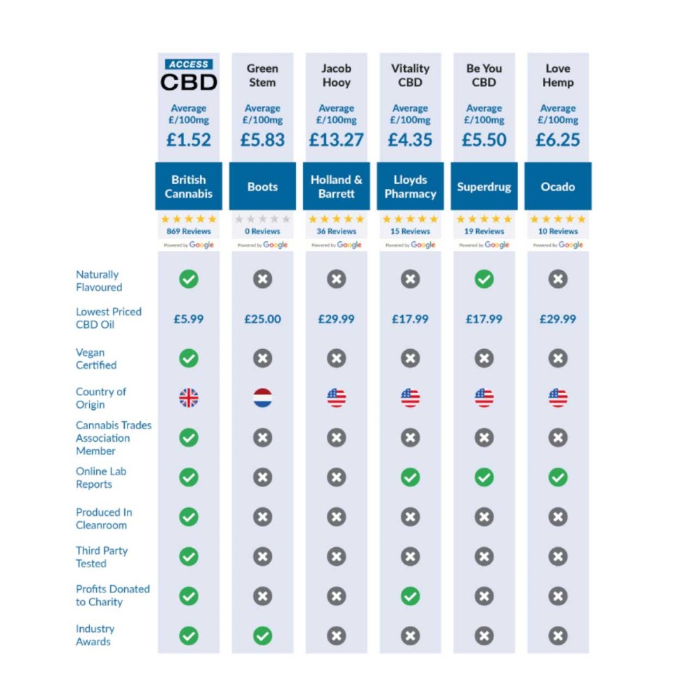 ACCESS CBD™ is on average 80% cheaper compared to other UK CBD brands.