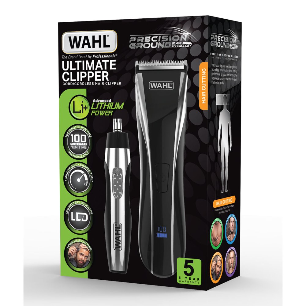 Wahl precision ground snap on blades offer a smooth and superior cutting performance. Included with your Lithium Ultimate Clipper is a stylish handy spotlight ear / nose trimmer to complete your grooming routine.