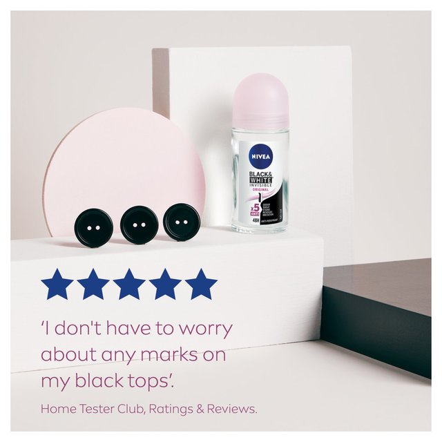 NIVEA Black & White Clear Original Anti-Perspirant Deodorant Roll On is here to help you protect your clothes from stains. The product offers white mark protection on your black shirts and anti-yellow staining on your white clothes. The unique formula offers reliable 48 hour protection from sweat and body odour, whilst caring for your skin.