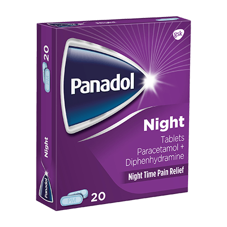 Panadol NightPain tablets provide fast and effective relief of bed time pain including headaches, backache, rheumatic pains and muscle pains, period pains and toothache which is causing difficulty in getting to sleep.